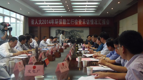 以省人大环资委副主任屠永发为组长的2014年环保赣江行检查采访组5月19日至21日到我市进行检查采访。19日下午,在九江召开了汇报会,市人大常委会副主任王利全程陪同,市政府副市长卢天锡向检查采访组汇报了我市大气污染防治情况。市人大城环委,市环保局、市发改委、市公安局、市交通局、市执法局、市工信委、九江发电厂、中石化九江分公司、中粮工业(九江)公司等部门负责同志参加了会议。